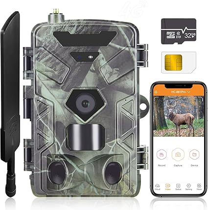 RecorCam 4G HC-881Pro Wildkamera es una cámara de caza con conexión 4G, vídeo 4K Ultra HD y resolución de imagen de 36 MP. Con visión nocturna de 25 m, velocidad de disparo de 0,3 segundos y ángulo de detección de 120°. ¡Descubre más detalles en el siguiente enlace! Ver Oferta en Amazon